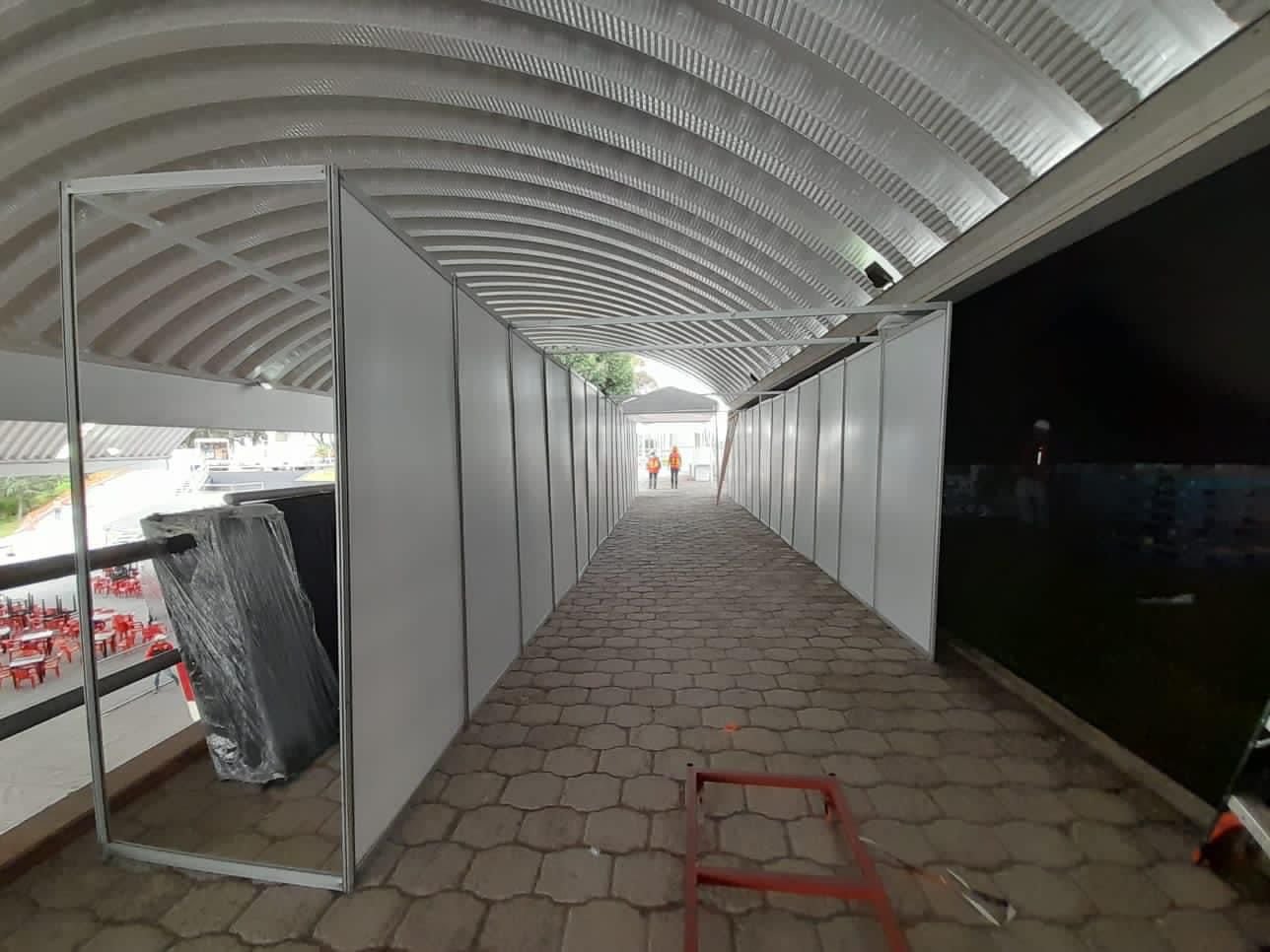 La gran diversidad para la construcción de espacio con mampareria nos permite crear camerinos y oficinas en tus eventos.